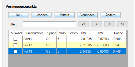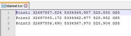 Die Weltkoordinaten der 3 Passpunkte (mit identischen Punktnummern) hält man in einer ASCII-Koordinatendatei vor, wie z.B. im CADdy-KOR-Format: