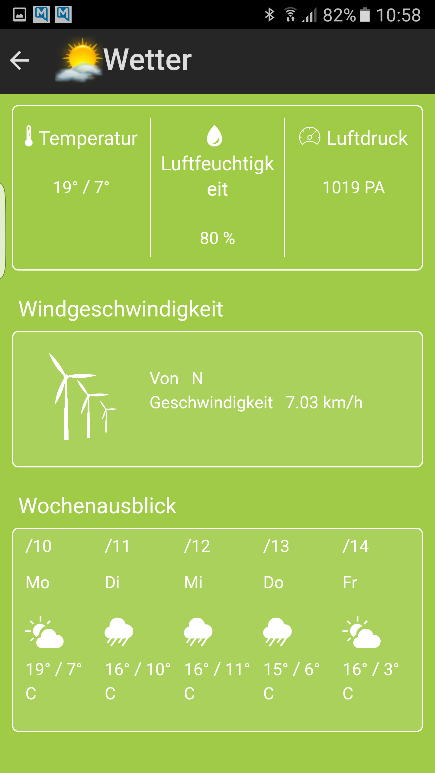 Eine golfgeeignete Wetterapp wird für die jeweilige Zielanlage aufgerufen.