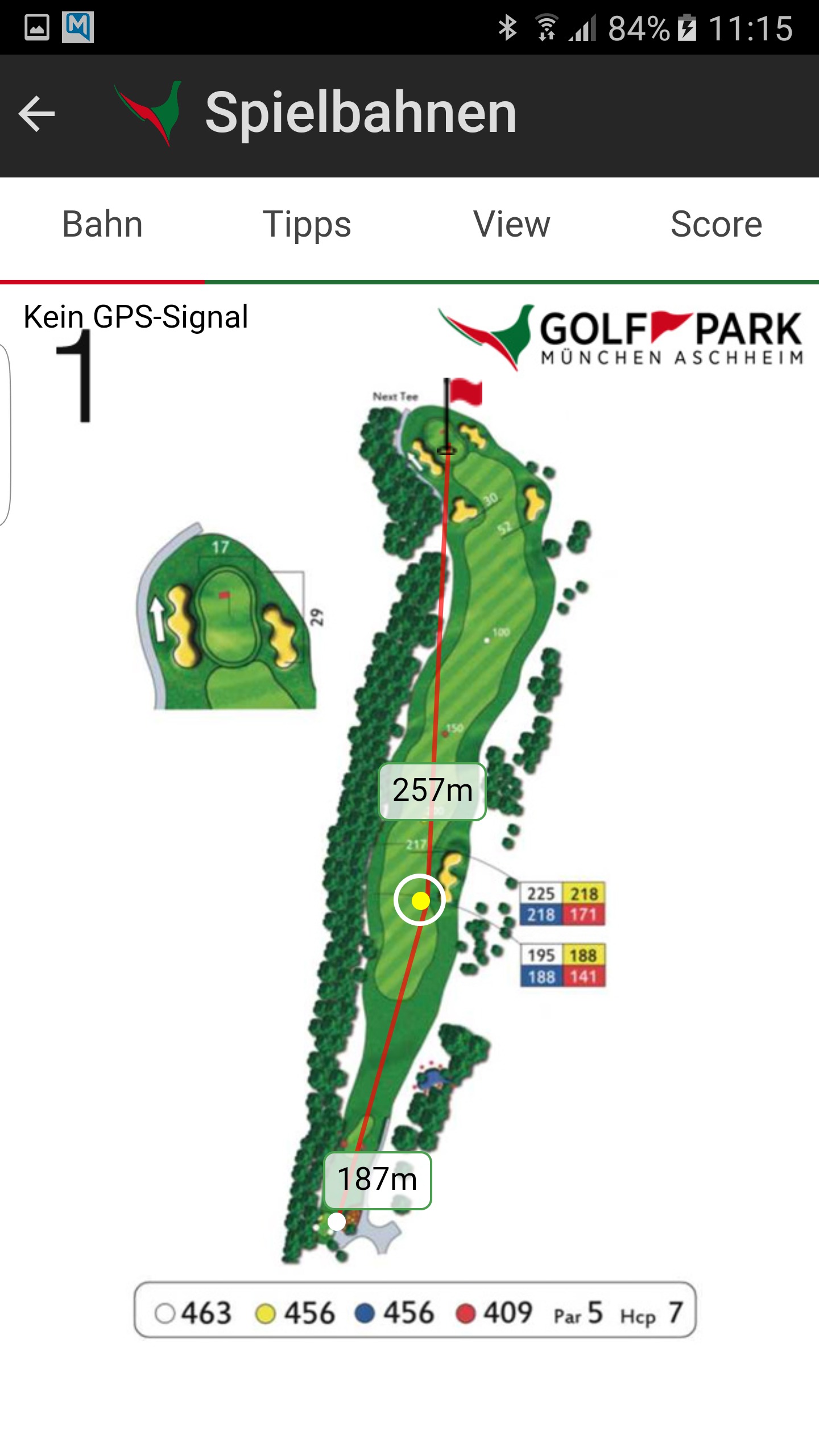 Der Livebirdiemaker ist die Hauptfunktion und zeigt immer die Liveposition und Entfernung der Fahne. Voraussetzung ist eine aktuelle Positionsermittlung (GPS) und die aktuelle Fahnenposition (kommt aus dem CADdy Golfscout).
