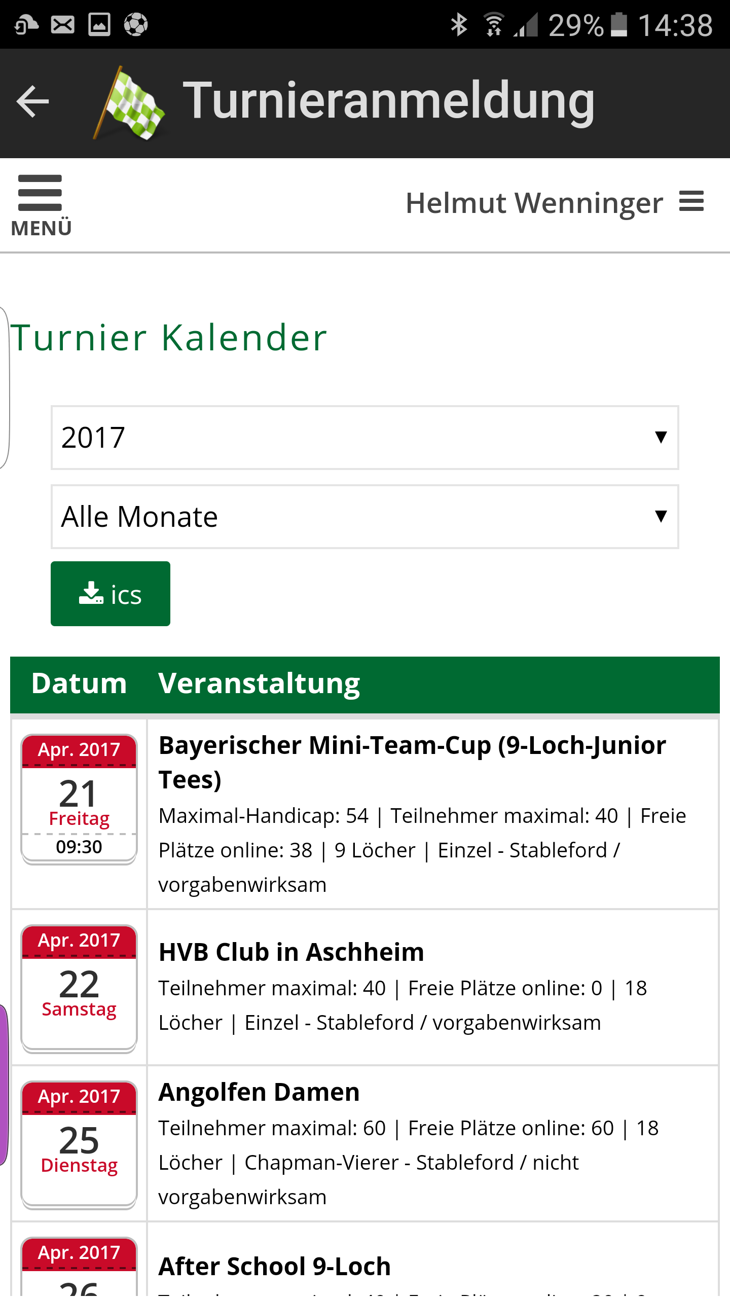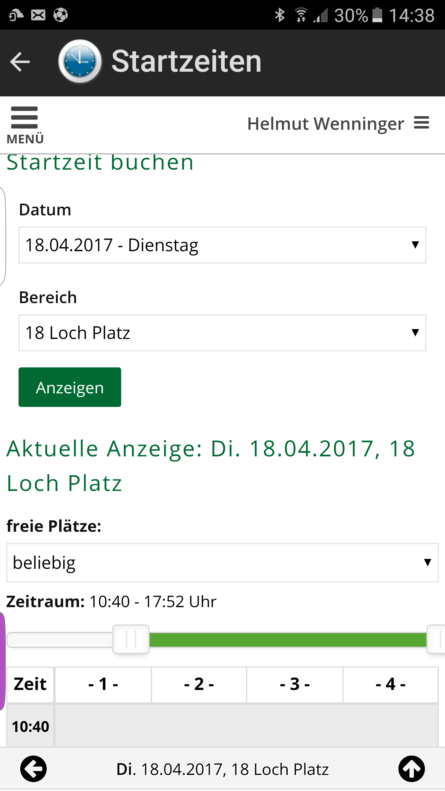 Dieser Menüpunkt greift immer auf die App/ Webseite zu, die der Golfclub aktuell verwendet (in der Regel PCCADDIE oder Albatros).