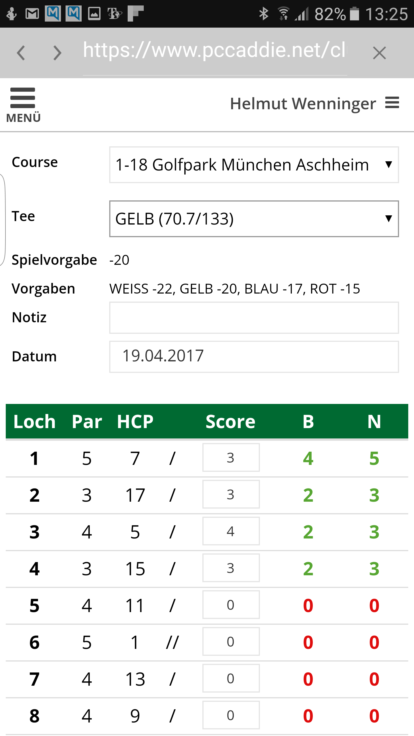 Am Ende jeder Bahn (automatisch) aufgerufen, erlaubt er den Eintrag der aktuell benötigten Schläge und ermittelt die Anzahl der Schläge gesamt brutto und netto sowie der Stablefordpunkte. Auch hier wird auf den Scorerechner von PCCADIE oder ähnlicher Anbieter zurückgegriffen.