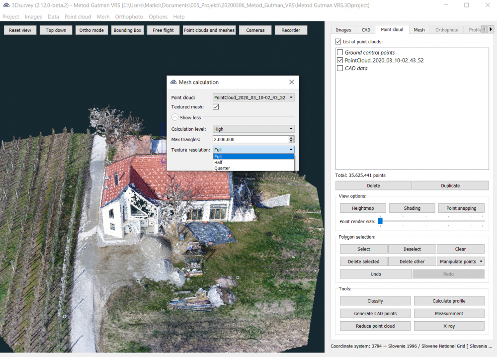 Falls Ihre Grafikkarte nicht in der Lage ist, die volle Texturauflösung für 3D-Mesh zu berechnen, haben Sie jetzt die Möglichkeit, die Textur mit voller, halber oder Viertel Auflösung zu berechnen: