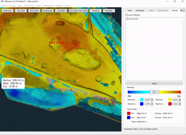 Fahren Sie mit der Maus über das Volumenergebnis und prüfen Sie die Höhe Auftrag und Abtrag in Echtzeit! Wenn Sie einen Volumenberechnungsbericht erstellen, werden Sie ihn lieben!