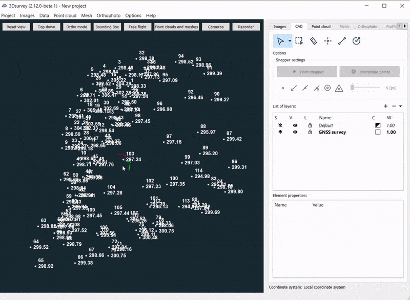 Berechnen Sie im Handumdrehen ein 2,5D-Netz basierend auf CAD-Punkten! Einfachste Möglichkeit, Ihre GPS/GNSS-Daten oder Totalstationspunkte in Flächen umzuwandeln, die perfekt für Volumenberechnungen, Höhenlinienberechnungen und vieles mehr geeignet sind.