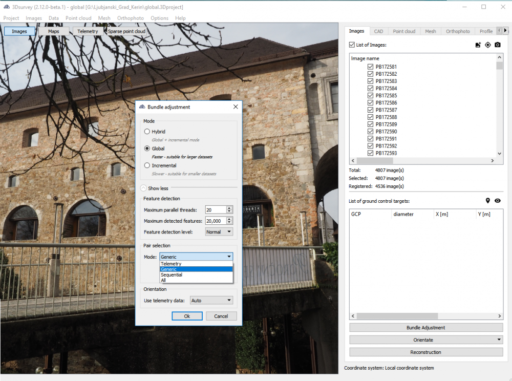 Falls Sie Aufnahmen mit einer Standard-Digitalkamera machen, haben Sie normalerweise keine Telemetriedaten von den Bildern (genaue GPS-Position). Das bedeutet, dass die Software im Verarbeitungsschritt alle möglichen Kombinationen von Bildpaaren abgleichen muss. Falls Sie mehr als 1000 Bilder haben, beschleunigen wir diesen Schritt mit neuen Matching-Paar-Vorwahlen um mehr als das 100-fache.